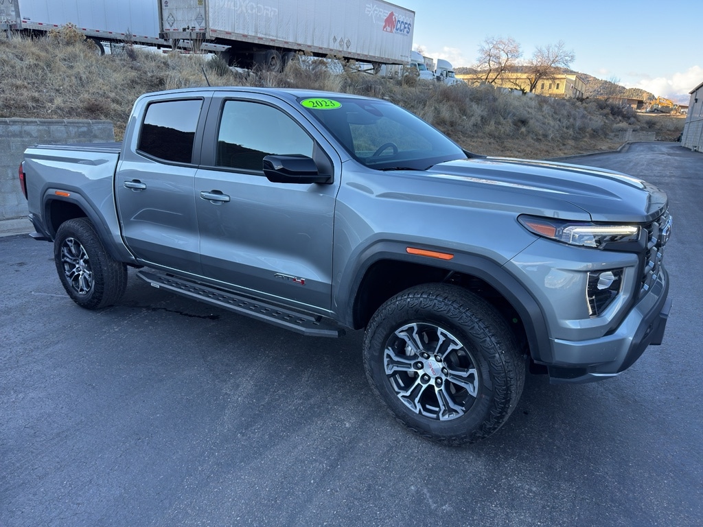 This vehicle is a certified CARFAX 1-owner. Our dealership has already run the CARFAX report and it is clean. A clean CARFAX is a great asset for resale value in the future. This GMC Canyon has a 4 Cyl, 2.7L high output engine. This 2023 GMC Canyon has four wheel drive capabilities. An off-road package is equipped on the vehicle. Start this model from inside with remote start. The installed navigation system will keep you on the right path. This unit's Lane Departure Warning helps keep you in your lane. Lane Keep Assist in this vehicle helps maintain safe driving by gently steering to stay within the lane. This GMC Canyon offers Android Auto and Apple CarPlay for seamless smartphone integration. This small pickup offers Automatic Climate Control for personalized comfort. The vehicle features cruise control for long trips. Greater towing safety becomes standard with the installed trailer brake.