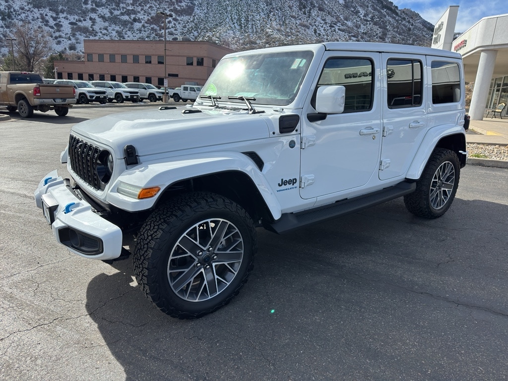 This vehicle is a certified CARFAX 1-owner. This 2024 Jeep Wrangler 4xe has a clean CARFAX vehicle history report. This Jeep Wrangler 4xe has a 4 Cyl, 2.0L high output engine. When you encounter slick or muddy roads, you can engage the four wheel drive on this Wrangler 4xe and drive with confidence. This unit comes equipped with Android Auto for seamless smartphone integration on the road. This Jeep Wrangler 4xe offers Apple CarPlay for seamless connectivity. This vehicle has auto-adjust speed for safe following. This Wrangler 4xe keeps you comfortable with Auto Climate. This model's Forward Collision Warning system alerts the driver to potential front-end collisions, enhancing safety. The Jeep Wrangler 4xe is pure luxury with a heated steering wheel. The leather seats in this Jeep Wrangler 4xe are a must for buyers looking for comfort, durability, and style. Bluetooth technology is built into the Jeep Wrangler 4xe, keeping your hands on the steering wheel and your focus on the road. You'll never again be lost in a crowded city or a country region with the navigation system on this unit. An off-road package is installed on this Jeep Wrangler 4xe so you are ready for your four-wheeling best.